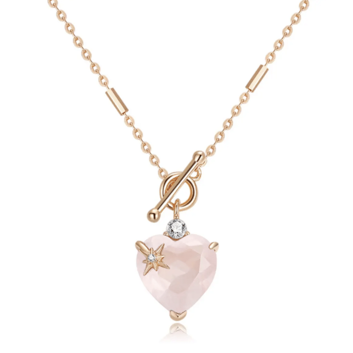 Centralnym elementem jest różowy kwarc w kształcie serca- kamień, który od wieków kojarzony jest z miłością, czułością oraz harmonią emocjonalną. Jego ciepły, delikatny odcień dodaje naszyjnikowi wyjątkowego uroku i kobiecej subtelności.